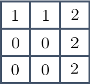 局所領域をいじったため、$(3,2)$の要素が$1$になりました。