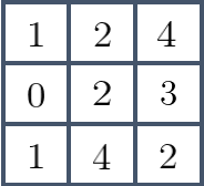 A = np.array([[1, 2, 4], [0, 2, 3], [1, 4, 2]], dtype=np.uint8)